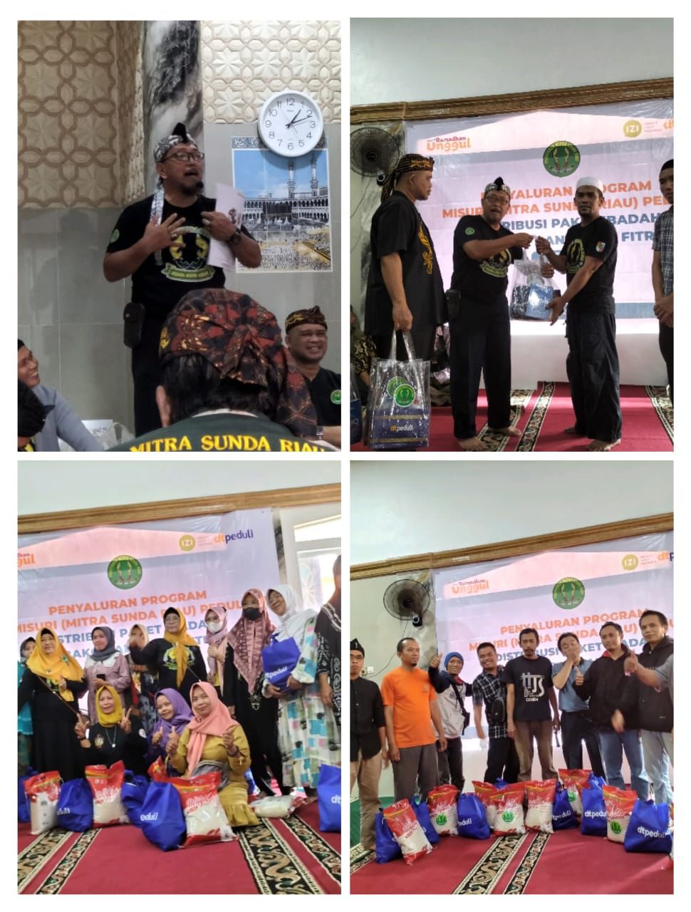 Paket sembako sebanyak 256 paket dibagikan kepada warga Sunda yang kurang mampu di Pekanbaru dan sebanyak 65 paket ibadah dibagikan untuk tiga Pondok Pesantren, diantaranya Pondok Pesantren Riadut Tauhid Jalan Badak dibawah pimpinan Ustadz Ujang Suriaman, Pondok Pesantren Hidayatul Muptadiin dibawah pimpinan Ustadz Bandan Nidzi dan Pondok pesantren Al Hawariyyun dibawah pimpinan Ustadz Aep.