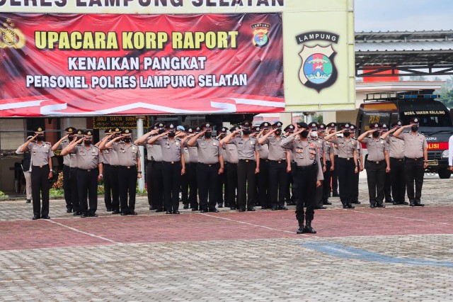 Adapun rincian personel Polres Lamsel yang melaksanakan upacara korps raport, yaitu pangkat AKP ke Kompol berjumlah 1 orang, Iptu ke AKP berjumlah 5 orang, Ipda ke Iptu 4 orang,Aiptu ke Ipda 1 orang (penghargaan), Aipda ke Aiptu 4 orang, Bripka ke Aipda 19 orang, Brigpol ke Bripka 4 orang, Briptu ke Brigpol 1 orang dan Briptu 2 personel.