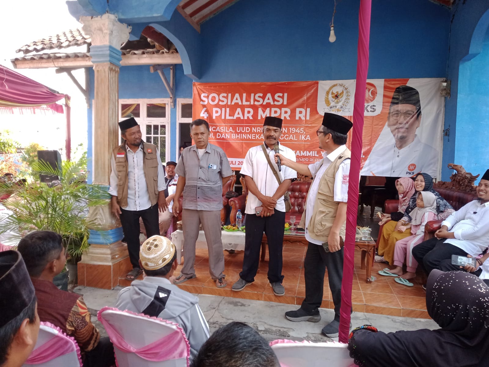 Lintaspena.com, Lamsel – Anggota DPR/MPR RI dari Fraksi Partai Keadilan Sejahtera (PKS) Dr. Al Muzzammil Yusuf, M.Si dapil Lampung 1 menggelar Sosialisasi 4 Pilar Kebangsaan MPR RI, yakni Pancasila, UUD 1945, NKRI dan Bhinneka Tunggal Ika di kediamannya bapak Edi Siswanto di Dusun Cipta Rasa RT 03 RW 01 Desa Bakti Rasa, Kecamatan Sragi Kabupaten Lampung Selatan.