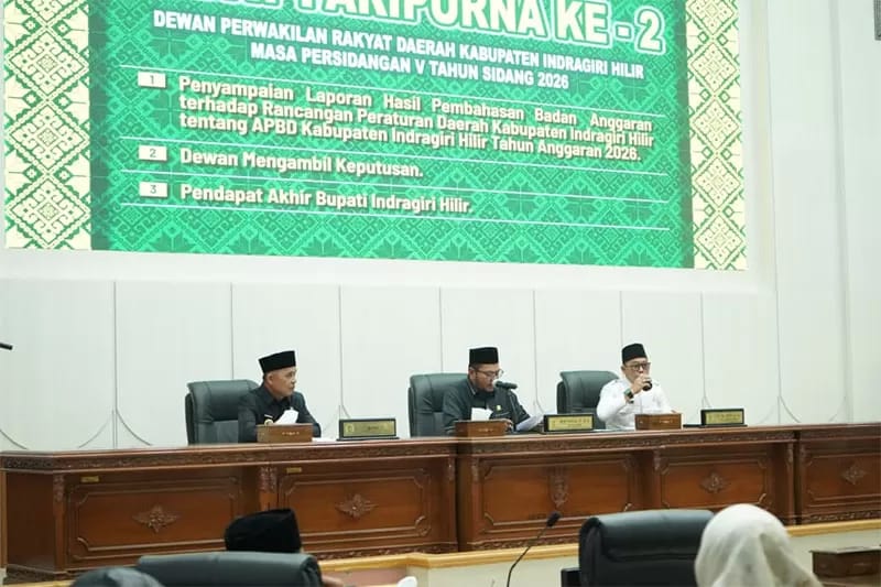 Rapat Paripurna ke-2 Masa Persidangan V Tahun Sidang 2026 tersebut dihadiri langsung Bupati Inhil Herman dan dipimpin Ketua DPRD Inhil Iwan Taruna, didampingi Wakil Ketua Ahmad Junaidi, di Ruang Sidang Utama DPRD Inhil.