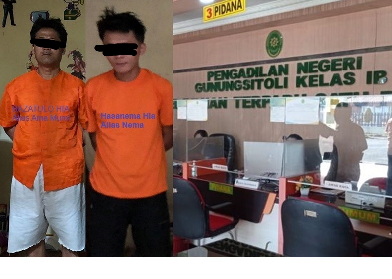 Vonis majelis hakim terhadap ketiga terpidana bernama Bazatulo Hia Alias Ama Murni, bersama kedua anaknya bernama Hasanema Hia Alias Nema dan Alianus Famati Hia Alias Fama selaras dengan tuntutan dalam dakwaan alternatif Pertama Jaksa Penuntut Penutut Umum (JPU) Kejaksaan Negeri Telukdalam.
