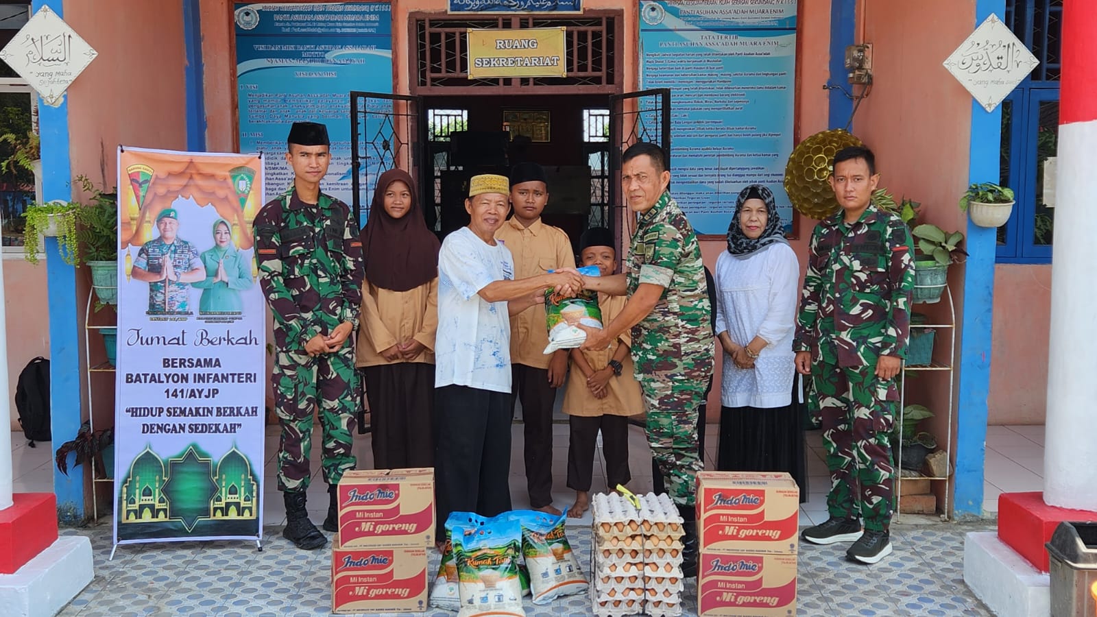 Batalyon Infantri 141/AYJP Berbagi Sembako ke Panti Asuhan Assa’adah
