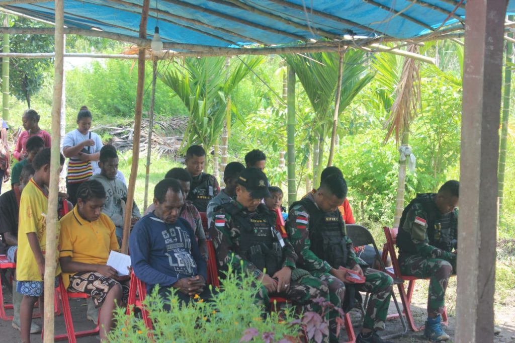 Keerom, Lintaspena.com – Satgas Pamtas Yonif 132/BS Pos Kalibom membantu proses pemakaman jenazah almarhum Margaretha mai tawa (62) warga Kp.Kalibom,Distrik Waris Kab. Keerom, Papua, Rabu, (02/11/2022).