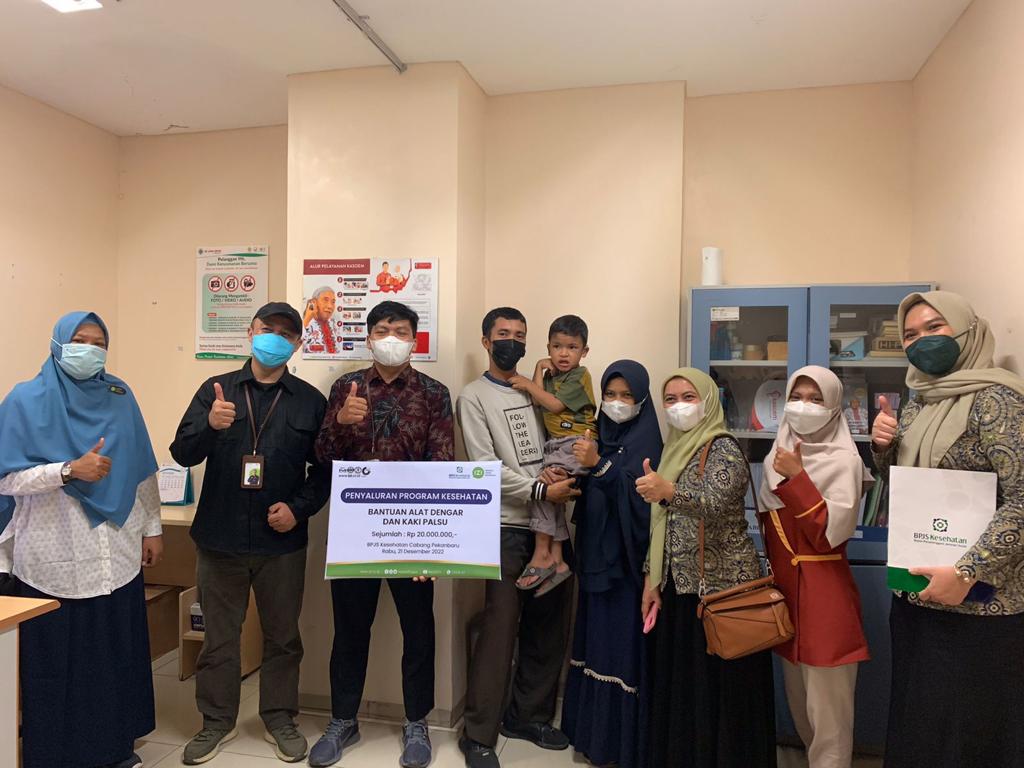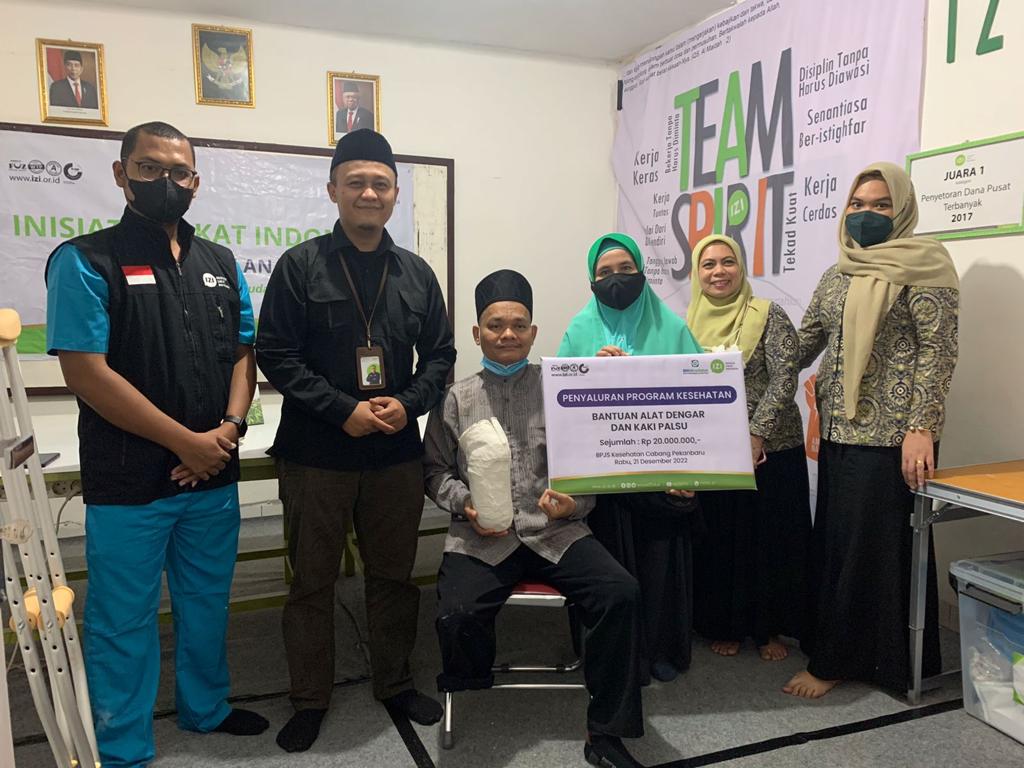 Pekanbaru, Lintaspena.com – BPJS (Badan Penyelenggara Jaminan Sosial) Cabang Pekanbaru bersama Inisiatif Zakat Indonesia (IZI) Perwakilan Riau menyalurkan Program Kesehatan Bantuan Alat Bantu Dengar dan Kaki Palsu kepada penyandang disabilitas. Penyaluran bantuan alat bantu dengar digelar di RS. Awal Bross Sudirman, sedangkan penyaluran bantuan kaki palsu diawali dengan pengukuran kaki palsu terlebih dahulu, digelar di Kantor IZI Perwakilan Riau di Jalan Paus, pada Rabu (21/12/22).