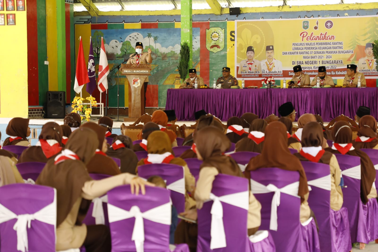 “Kami mengucapkan selamat atas dilantiknya pengurus Mabiran, Kwarran dan LPK Gerakan Pramuka Kecamatan Bungaraya, semoga amanah dan bersungguh-sungguh dalam melaksanakan tugas pokok dan kewajiban sesuai dengan apa yang diharapkan,” ucap Alfedri, Kamis (9/6/2022), di SMAN 1 Bungaraya.