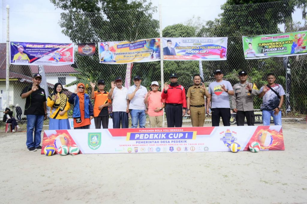 BENGKALIS, LINTASPENA.COM – Bupati Bengkalis diwakili Asisten Pemerintahan dan Kesejahteraan Rakyat Sekretaris Daerah Kabupaten Bengkalis Andris Wasono resmi membuka Turnamen Bola Volly Bermasa Pedekik Cup I, bertempat di Kantor Desa Pedekik, senin (3/10/22).