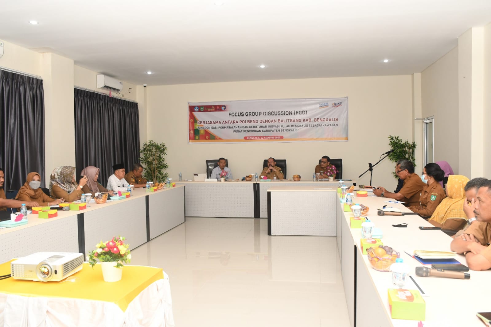 BENGKALIS, LINTASPENA.COM – Bupati Bengkalis diwakili Sekretaris Daerah H.Bustami HY menghadiri sekaligus membuka Focus Group Discussion (FGD) Sinkronisasi permasalahan dan kebutuhan inovasi pulau Bengkalis sebagai kawasan pendidikan Kabupaten Bengkalis, Senin (22/08/2022), di Ruang Rapat Politeknik Negeri Bengkalis Lantai II Gedung Kuliah Terpadu (GKT).