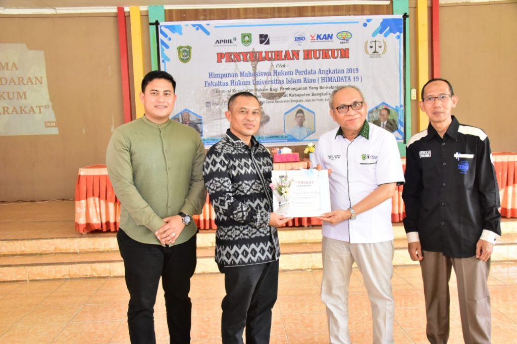 Hal ini disampaikan Bupati Bengkalis Kasmarni diwakili Wakil Bupati H Bagus Santoso saat menghadiri acara Penyuluh Hukum yang dilaksanakan Mahasiswa Himpunan Mahasiswa Hukum Perdata Angkatan 2019 Fakultas Hukum Universitas Islam Riau (HIMADATA 19), di Aula Kantor Camat Bengkalis Desa Air Putih, Sabtu, (24/09/2022).
