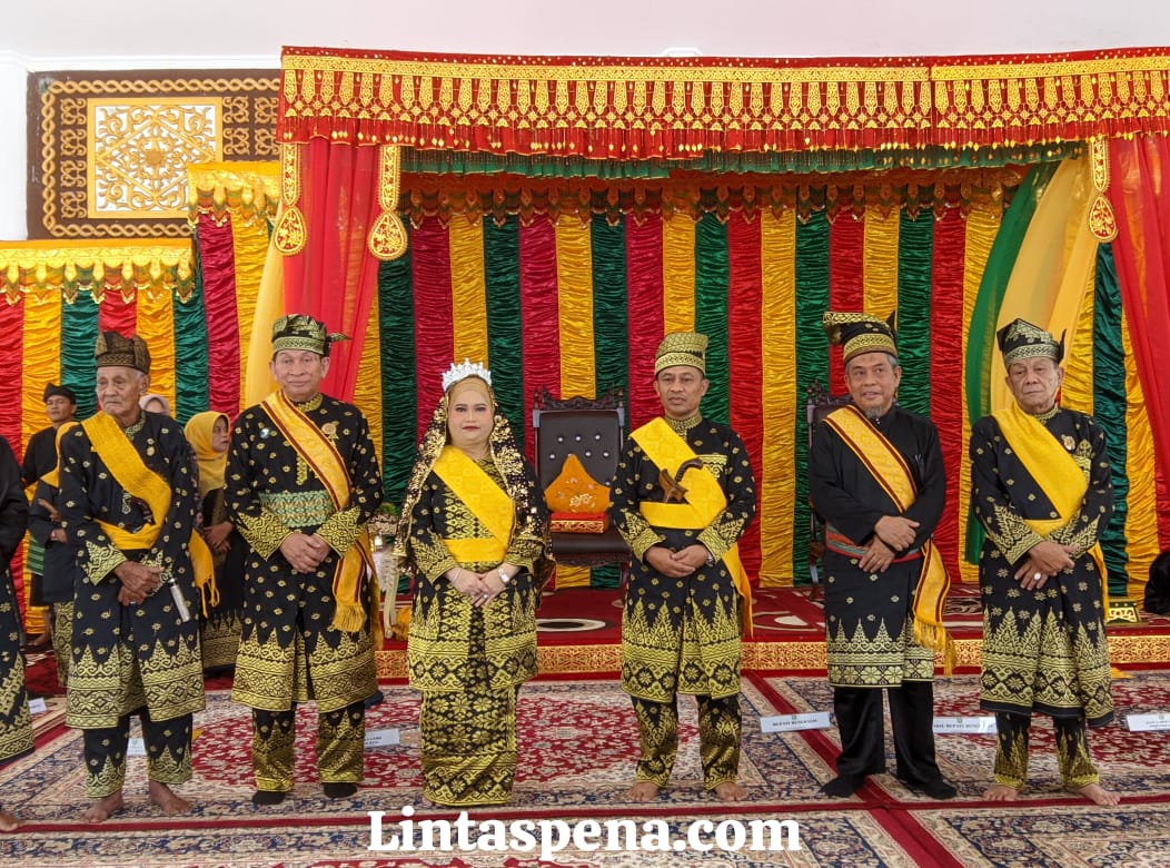 Bengkalis, Lintaspena.com – Melalui prosesi penabalan secara adat melayu, Bupati Kasmarni telah dianugerahi gelar adat, sebagai Datuk Seri Setia Amanah Masyarakat Adat Melayu Kabupaten Bengkalis Seri Perdana Payung Negeri dan Wakil Bupati Bengkalis H. Bagus Santoso, dianugerahi gelar adat Datuk Timbalan Seri Setia Amanah Masyarakat Adat Melayu Kabupaten Bengkalis.