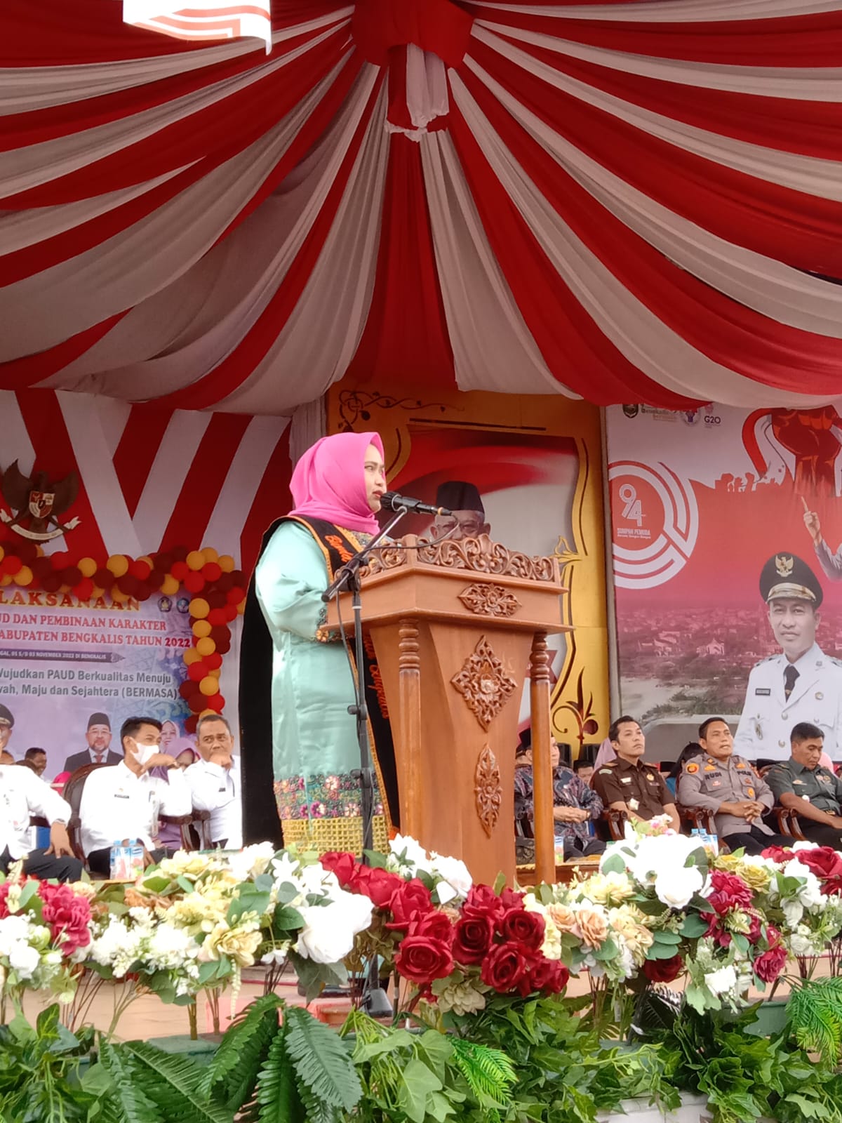 Kemudian Staf Ahli Bupati Bidang SDM Alfakhrurrazy, Ketua TP PKK Kab. Bengkalis Hj. Siti Aisyah, Ketua MUI Bengkalis H. Amrizal, Kepala Dinas Pendidikan Kab. Bengkalis HJ. Kholijah, Plt. Kasat Pol PP Kab. Bengkalis Hengki Irawan, Pejabat Pimpinan Tinggi Pratama dan pengawas lingkup Kab. Bengkalis, serta Camat dan Bunda PAUD se-Kabupaten Bengkalis. **(Asnawi)