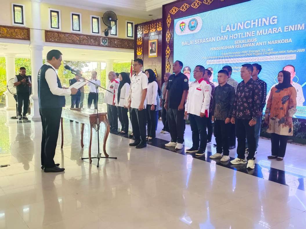 Lintaspena.com Muara Enim – Launching Balai Serasan Dan Hotline Muara Enim Bersinar sekaligus pengukuhan relawan anti Narkoba yang selenggarakan oleh BNNK Muara Enim di hadiri Bupati Muara Enim Kepala BNNP Provinsi Sumatera Selatan.Acara berlangsung di Balai agung serasan sekundang Kabupaten Muara Enim. Rabu (26/11/2025).