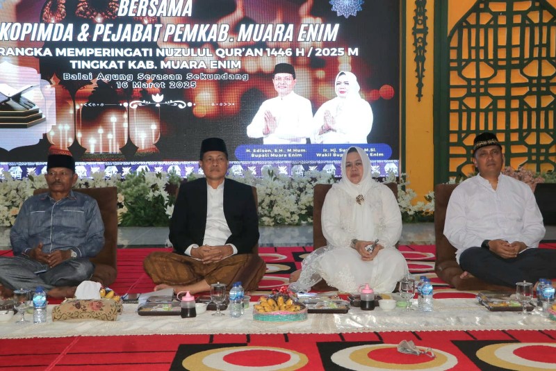 Lintaspena.com|Muara Enim– Bupati Muara Enim, H.Edison, S.H., M.Hum., siap membangkitkan kawasan kompleks Islamic Center sebagai pusat kegiataan keagamaan islam di Kabupaten Muara Enim dalam upaya mewujudkan pembangunan masyarakat yang agamis di Bumi Serasan Sekundang. Hal ini disampaikan Bupati disela peringatan Malam Nuzulul Qur’an 1446 H tingkat Kabupaten Muara Enim yang diselenggarakan Pemerintah Kabupaten Muara Enim di Balai Agung Serasan Sekundang (BASS), Minggu (16/03/25).