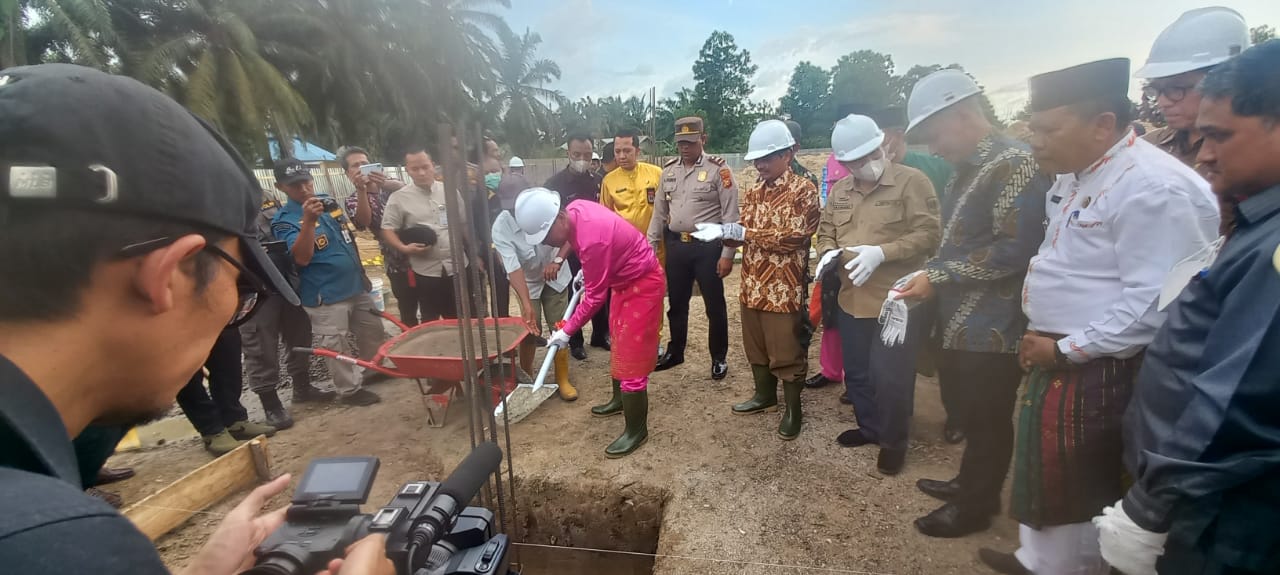 Rohil, Lintaspena.com – Bupati Rokan Hilir (Rohil) Afrizal Sintong secara langsung melakukan peletakan batu pertama pembangunan Tower dan bangunan LPP TVRI di LenggadaiHilir, Kecamatan Rimba Melintang, Jumat (10/6/2022).