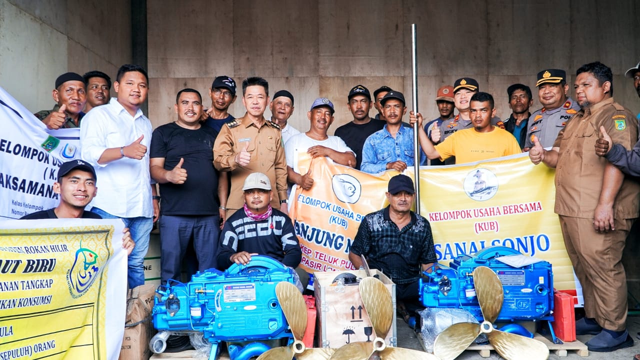 Bupati Rohil Serahkan Bantuan Mesin Bot Sebanyak 80 Kepada Kelompok Nelayan