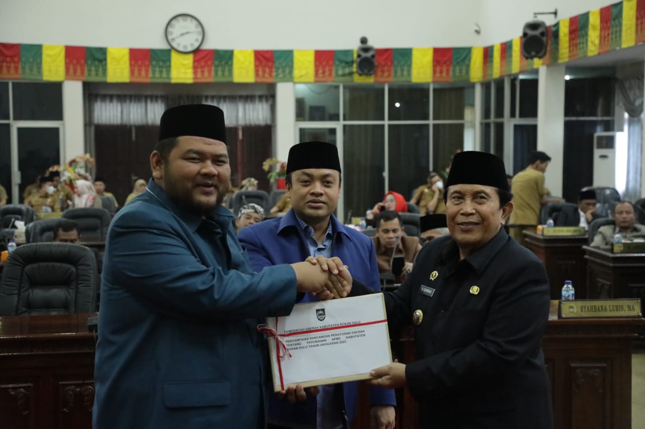 Ranperda APBD-P 2022 Rohul ini diserahkan langsung Bupati Rokan Hulu H. Sukiman kepada Ketua DPRD Rohul Novliwanda Ade Putra didampingi Wakil Ketua Andrizal. Di ruang rapat Paripurna DPRD Kabupaten Rohul, Selasa (20/9/2022).