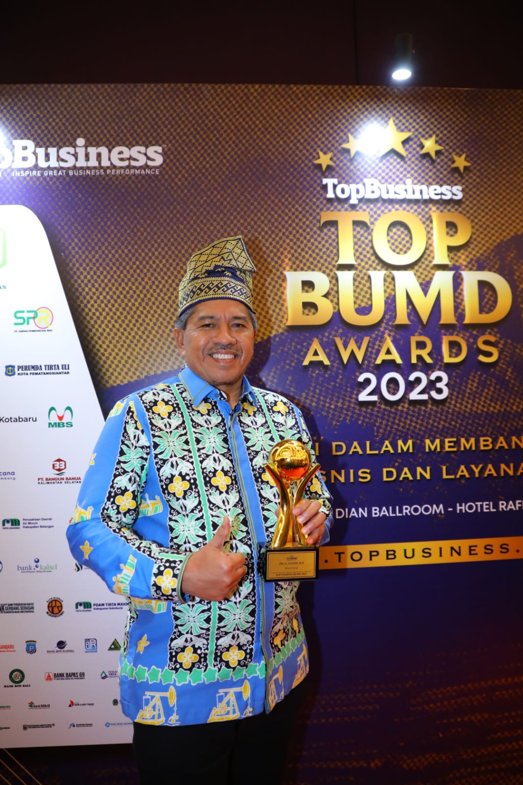 ”Alhamdulillah, hari ini kami kembali menerima penghargaan kategori Top Pembina BUMD Awards 2023 dari majalah Top Business. Penghargaan ini sebagai bentu kepedulian kepada kepala daerah atas support dalam membina BUMD nya,” ucapnya.