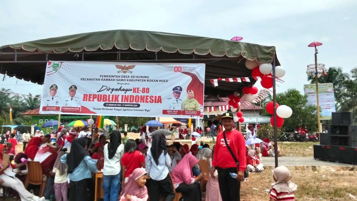 Rohul,Lintaspena.com– Memperingati Hari Ulang Tahun (HUT) ke-80 Republik Indonesia, Kepala Desa Sei Kuning, Abdu Halik, bersama masyarakat desa Sei Kuning menggelar berbagai perlombaan dan pertunjukan untuk memeriahkan acara tersebut.minggu 24/08-2025
