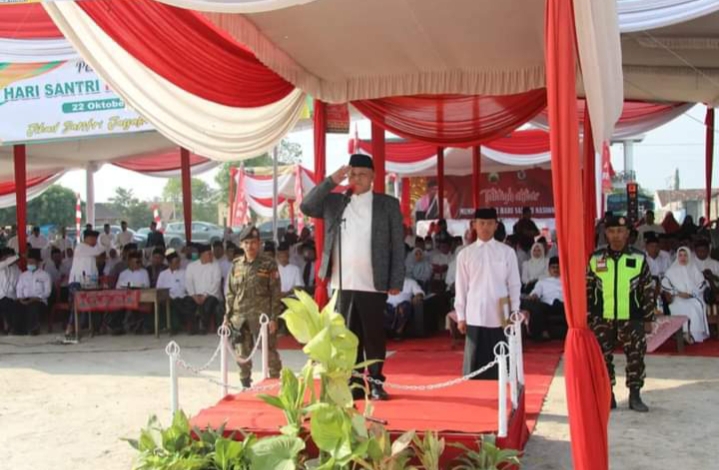 Bupati Lampung Selatan, H. Nanang Ermanto bertindak sebagai pemimpin upacara peringatan Hari Santri Nasional yang diikuti para santri dan pimpinan ponpes se-Lamsel.