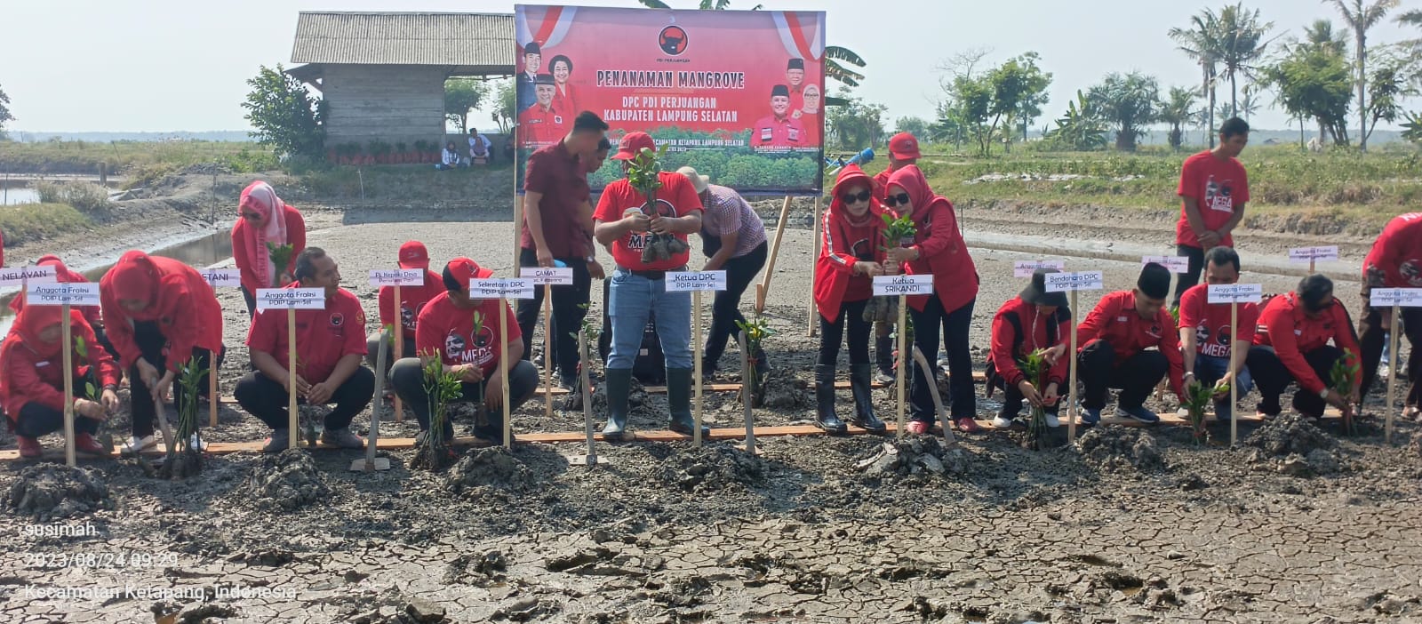 “Selain pada hari ini saya mengajak saudara-saudara sekalian, para pengurus DPC, PAC dan Bacaleg untuk sama-sama bergotong royong melakukan penghijauan dengan menanam pohon mangrove, kita juga akan melaksanakan konsolidasi kader partai dengan bersatu bersama masyarakat menjelang pemilu serentak 2024 nanti, dan kita bertekad untuk memenangkan kembali PDI Perjuangan pada Pemilu nanti,” sambungnya.