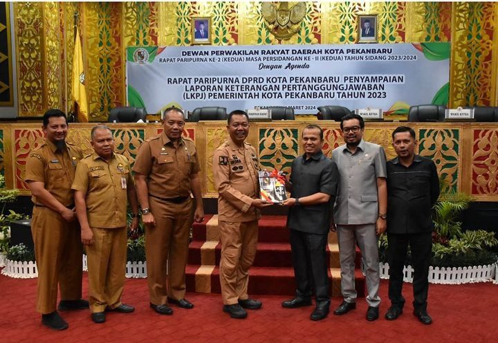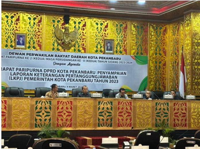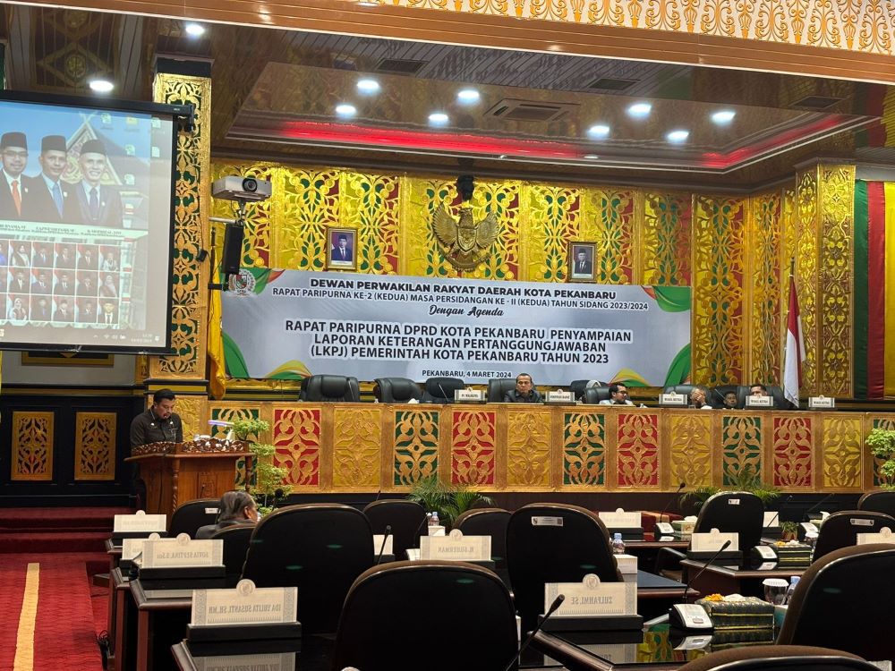 PEKANBARU, Lintaspena.com – Dewan Perwakilan Rakyat Daerah (DPRD) Kota Pekanbaru menggelar Rapat Paripurna Penyampaian Laporan Keterangan Pertanggungjawaban (LKPj) Pemerintah Kota Pekanbaru Tahun 2023 pada Senin (04/03/2024).