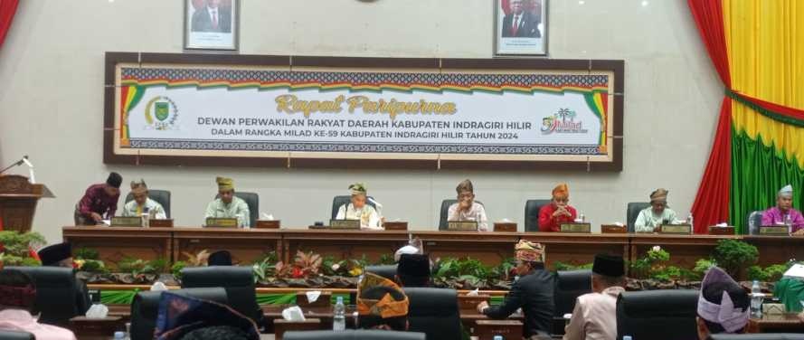 Tembilahan, Lintaspena.com – Dewan Perwakilan Rakyat Daerah (DPRD) Kabupaten Indragiri Hilir menggelar Rapat Paripurna Istimewa dalam rangka peringatan Milad Kabupaten Indragiri Hilir yang ke 59 di Aula Utama DPRD, Jumat (14/06/2024)