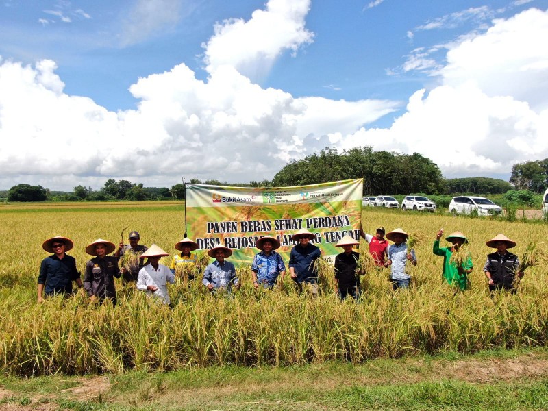 Pada Kamis (11/5/2023), General Manager PTBA Unit Pelabuhan Tarahan Dadar Wismoko memimpin Panen Perdana Beras Sehat di Desa Rejosari Mataram. Turut hadir juga VP Sustainabilty PTBA Hartono, Ahli Pengembangan Sosial dan Kemasyarakatan PTBA Roy Ubaya, Kepala Kampung Rejosari Harsono, Penyuluh Pertanian Lapangan (PPL) Kecamatan Seputih Mataram, serta Komisaris dan Direktur PT Pengayom Tani Sejagad selaku mitra strategis PTBA pada Program Ruang Rural.