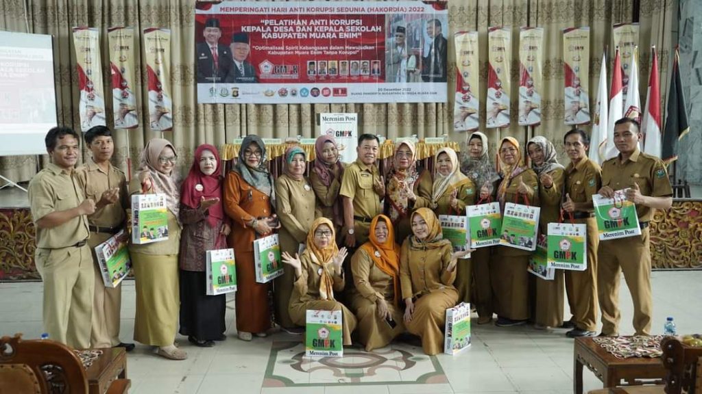Lintaspena.com, Muara Enim – Dalam rangka memperingati Hari Anti Korupsi Sedunia (Hakordia) Tahun 2022, Pemerintah Kabupaten Muara Enim bersinergi dengan Dewan Pimpinan Daerah Gerakan Masyarakat Perangi Korupsi (GMPK) gelar Pelatihan Anti Korupsi Kepala Desa dan Kepala Sekolah se-Kabupaten Muara Enim dengan tema optimimalisasi spirit kebangsaan dalam mewujudkan Kabupaten Muara Enim, di Gedung Kesenian Putri Dayang Rindu. Selasa (20/12/2022).