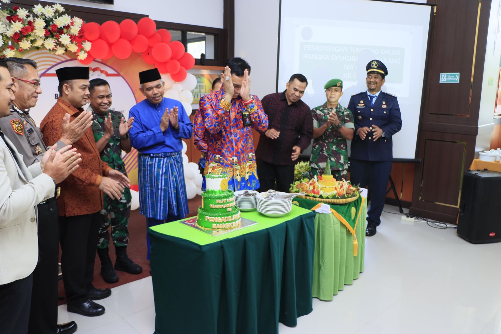 Diakhir kegiatan Syukuran ini di lakukan pemotongan tumpeng oleh Ketua Pengadilan Negeri Bangkinang Kelas I B yang selanjutnya di berikan kepada Pj. Bupati Kampar beserta Forkopimda, Kemudian melakukan Foto bersama di Halaman Kantor Pengadilan Negeri Bangkinang Kelas IB.