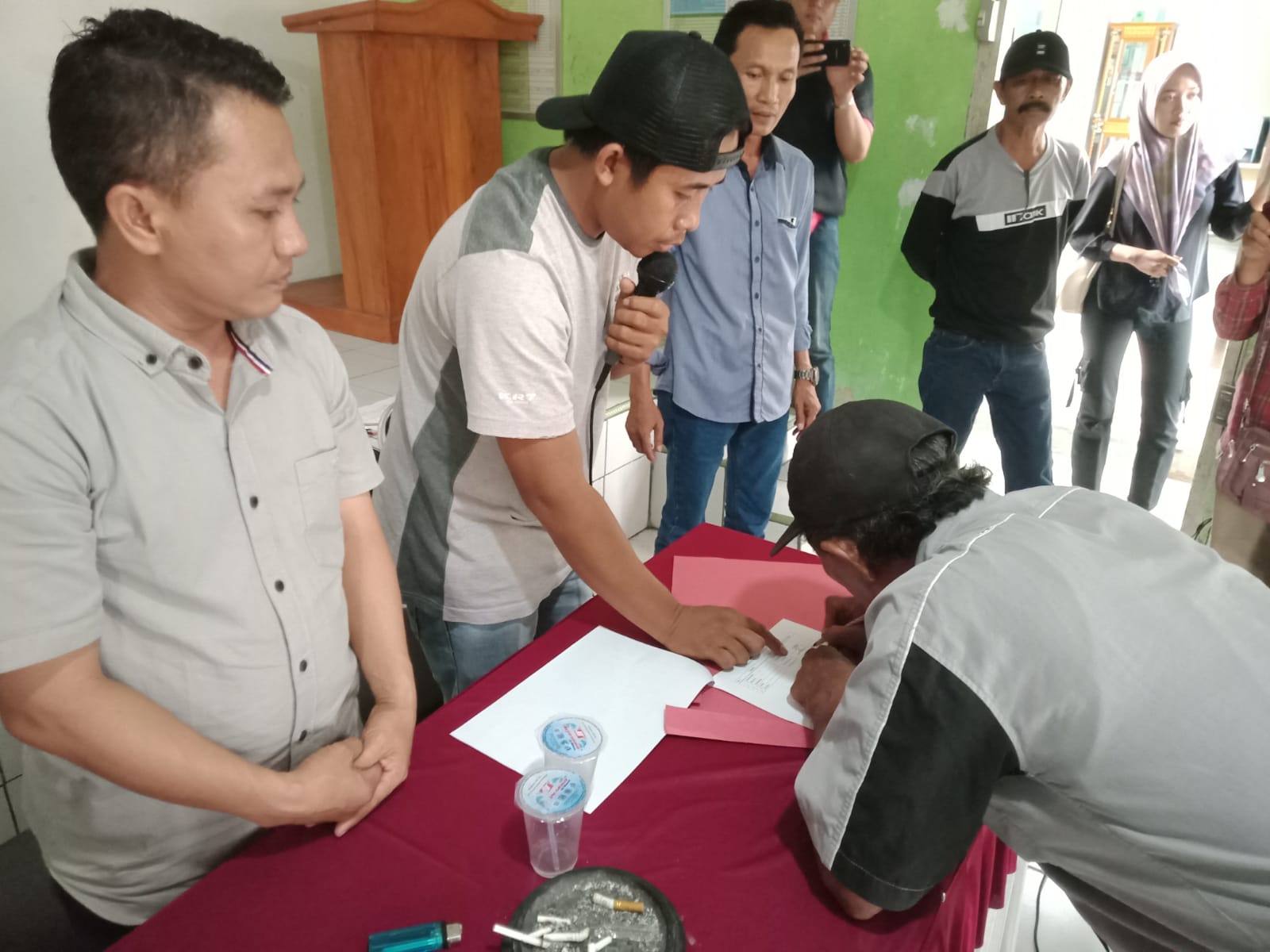 Penandatanganan berita acara Penetapan Kepala Dusun 01-05 Desa Taman Sari Kecamatan Ketapang usai musyawarah atau diskusi antara Pemerintahan Desa Taman Sari dengan perwakilan warga masyarakat 5 Dusun, di kantor desa setempat, Sabtu sore (13/1/2024).