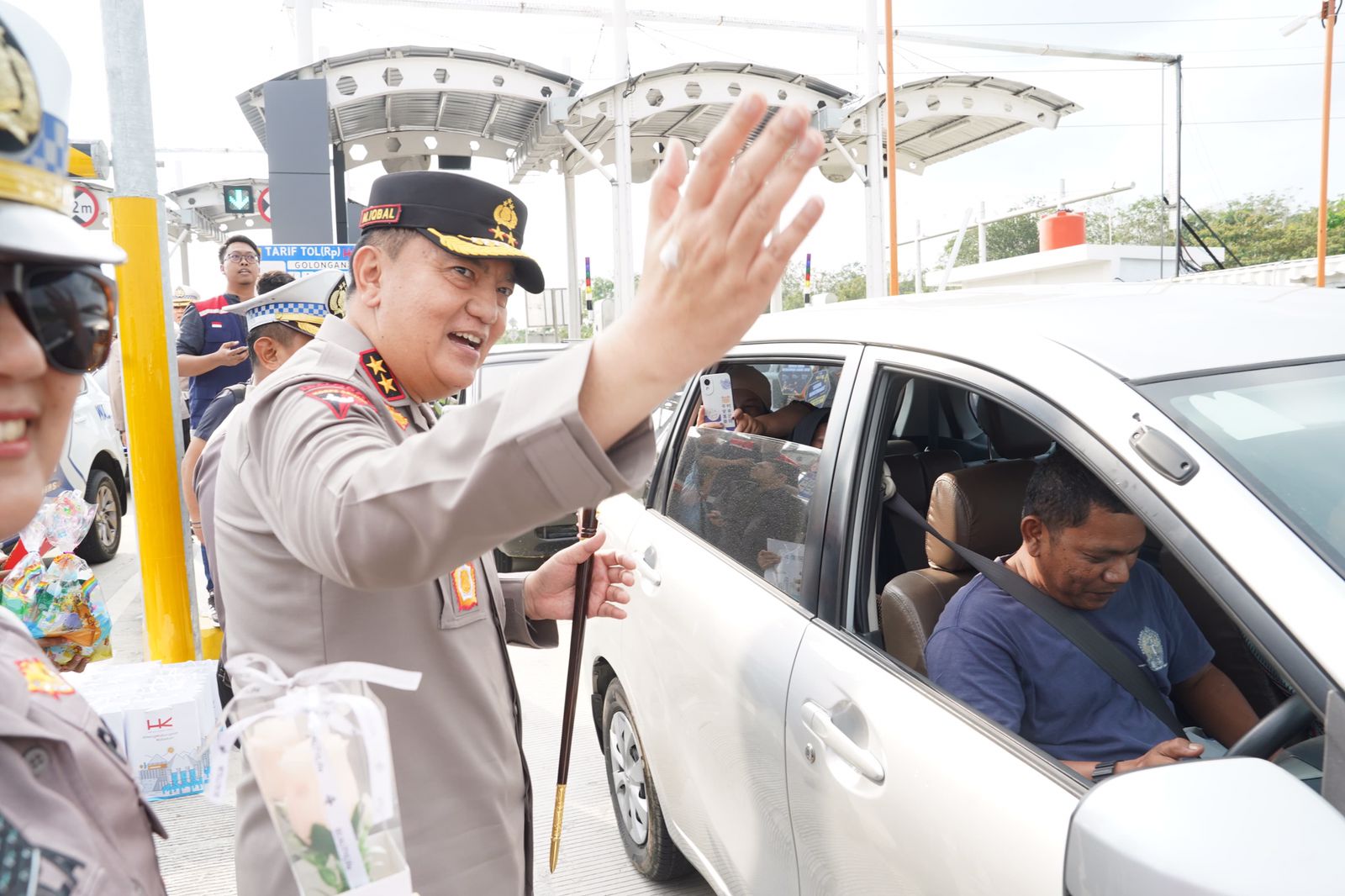 Dalam kesempatan itu, mantan Kadiv Humas Polri ini menyempatkan untuk mengatur langsung lalu lintas di exit Tol.