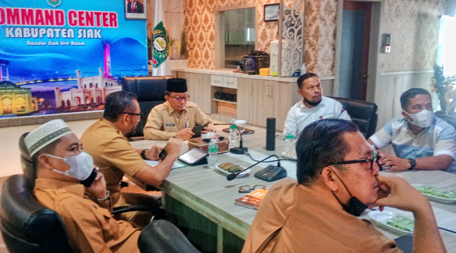 Mempura, Lintaspena.com – Sekretaris Daerah Kabupaten Siak Arfan Usman Ikuti Rapat Koordinasi Nasional bersama Menteri Dalam Negeri Kabupaten/Kota se-Indonesia dalam rangka Pengendalian Inflasi Daerah secara virtual, ruang coment center Bandar Siak komplek perkantoran Bupati Siak, senin (14/11/2022).