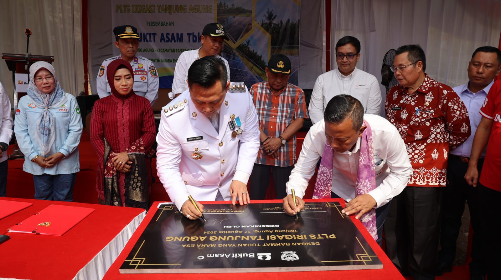 Bertepatan dengan HUT ke-79 RI pada Sabtu (17/8/2024), peresmian PLTS irigasi tersebut dilakukan oleh Hengky Putrawan, Pj Bupati, Muara Enim dan Suherman, Direktur Sumber Daya Manusia (SDM), PT Bukit Asam Tbk (PTBA).