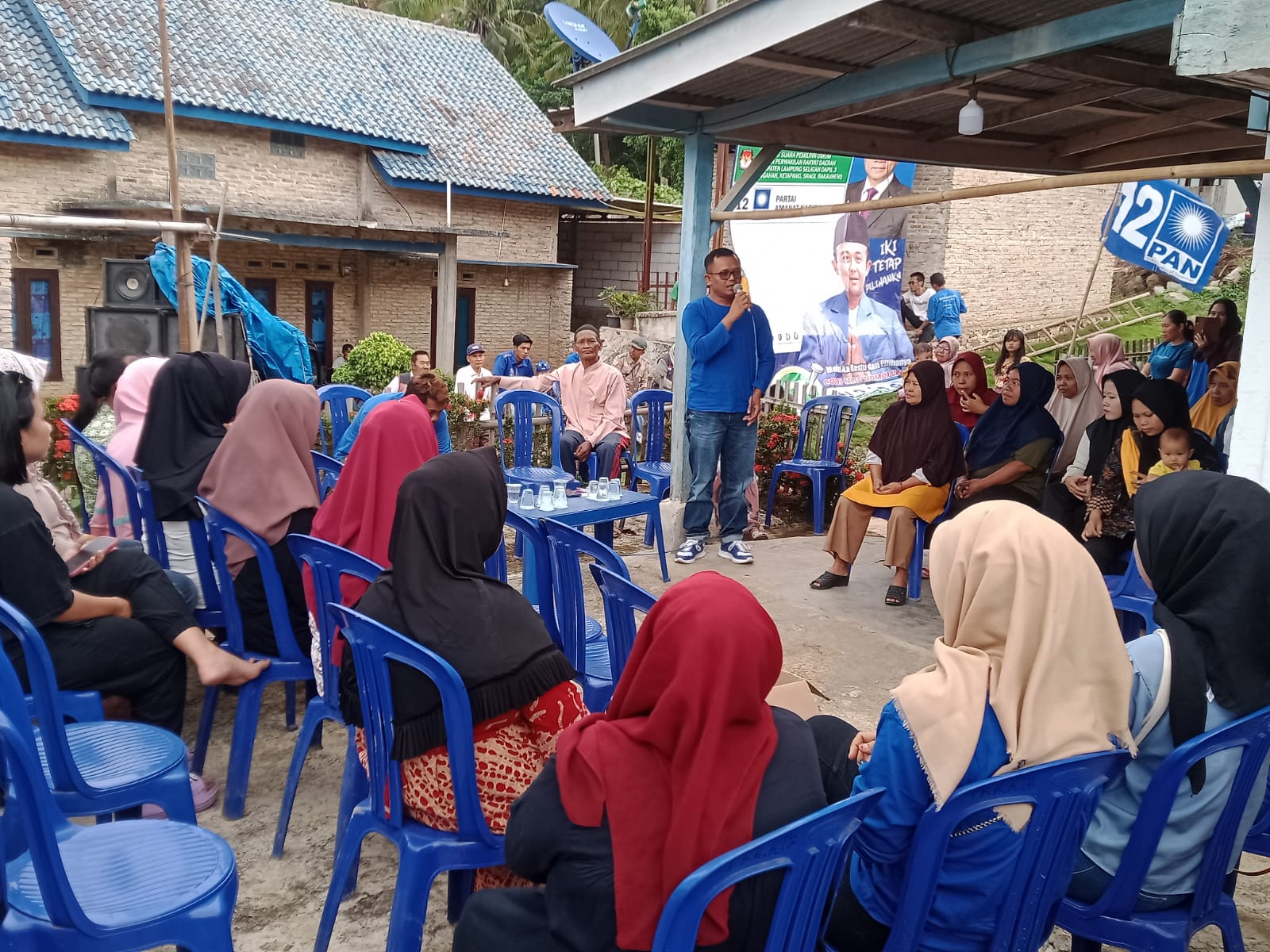 Calon Legislatif Kabupaten Lampung Selatan, Mas Widodo saat berkampanye atau bersilaturahmi tatap muka dengan warga masyarakat Dusun Kayu Tabu, Desa Kelawi, Kecamatan Bakauheni, Minggu (7/1/2024).
