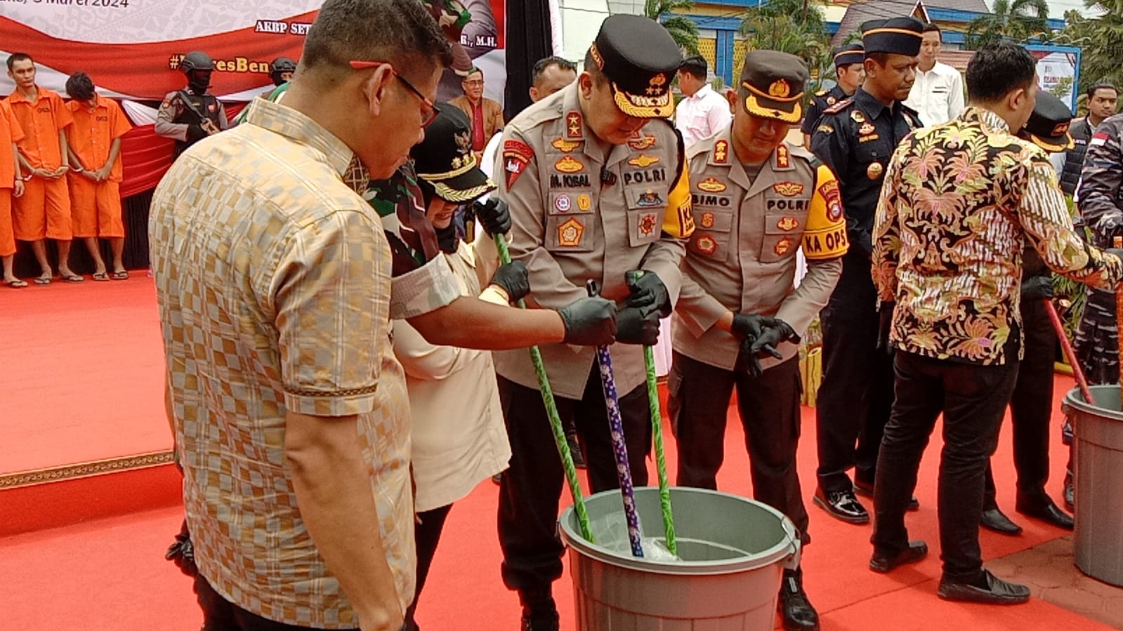 Kapolda Riau Irjen Pol Muhammad Iqbal, saat pimpin press release pemusnahan barang bukti sabu di Halaman Mapolres Bengkalis, Ahad 3 Maret 2024. mengatakan kepada sejumlah wartawan Pulau Bengkalis.