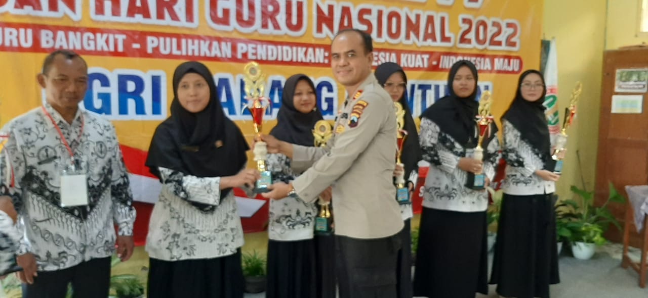 Acara diakhiri penyerahan trofi juara bagi para pemenang lomba untuk guru dalam memperingati HUT Ke-77 PGRI. Dalam kesempatan itu Kapolsek Muntilan AKP Abdul Muthohir berkenan menyerahkan trofi kejuaraan lomba.