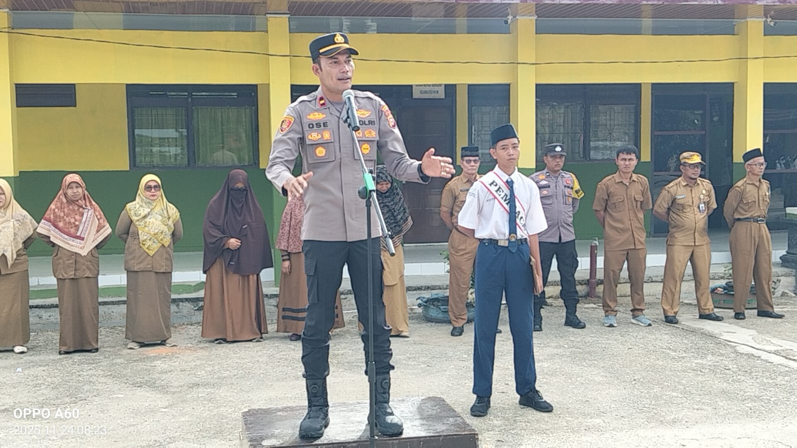 Rohul, Lintaspena.com – Kapolsek Rambah Samo, Ipda Sarlose Mesra, S.H., bertindak sebagai Inspektur Upacara di SMP Negeri 1 Rambah Samo pada Senin (24/11/2025). Dalam amanatnya, ia menekankan tiga hal krurial bagi siswa: menjauhi narkoba, menghindari balap liar, dan tidak melakukan perundungan (bullying).