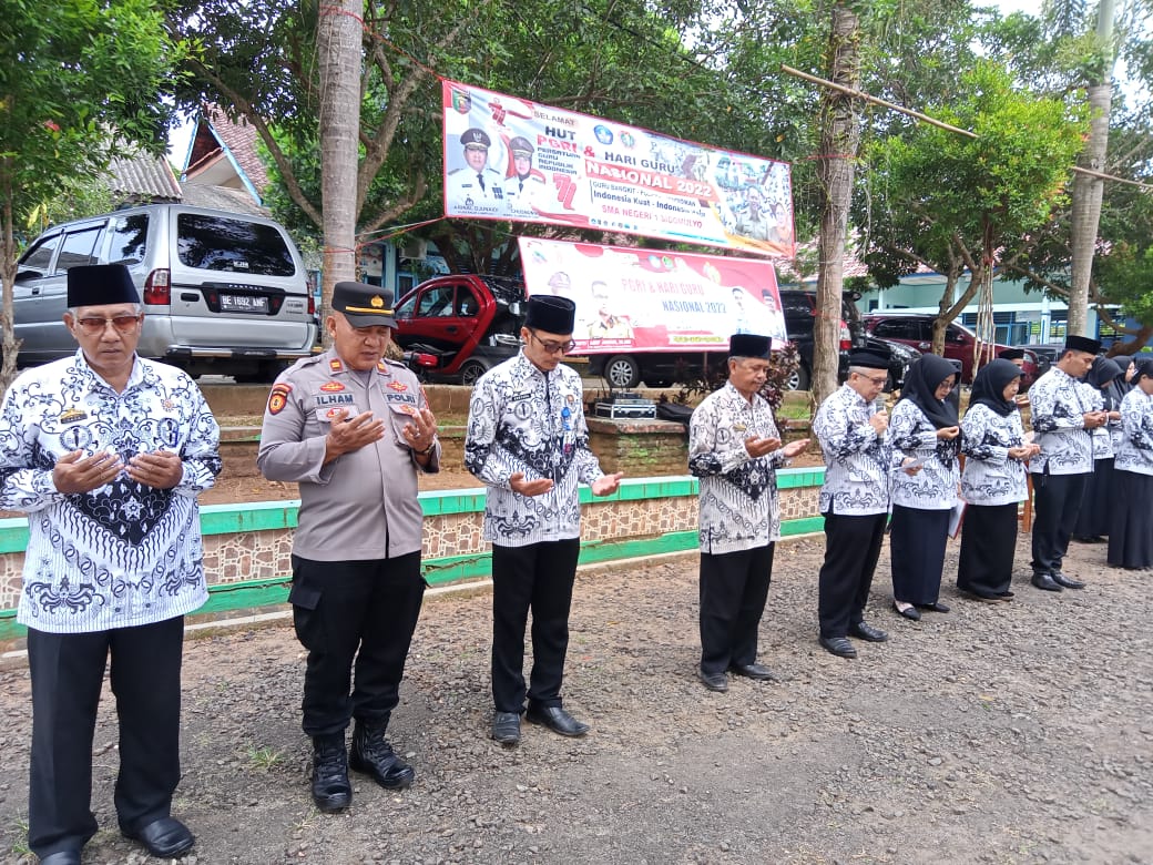 Lintaspena.com, Lamsel – Kapolsek Sidomulyo Iptu Ilham Effendi mengikuti kegiatan Upacara Hari Ulang Tahun PGRI ke-77 dan Hari Guru Tahun 2022 se-Kecamatan Sidomulyo, Kabupaten Lampung Selatan di Lapangan Upacara SMA N 1 Sidomulyo. Sabtu, (26/11/2022) pukul 08.00 WIB.