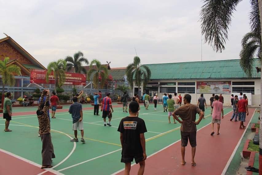 PEKANBARU, LINTASPENA.COM – Dalam rangka meningkatkan imunitas dan kesehatan Warga Binaan Lembaga Pemasyarakatan Kelas II A Pekanbaru mengikuti kegiatan olah raga senam pada sabtu pagi (18/06) yang diadakan di halaman olah raga Lapas mulai pukul 08.15 wib sampai dengan selesai.
