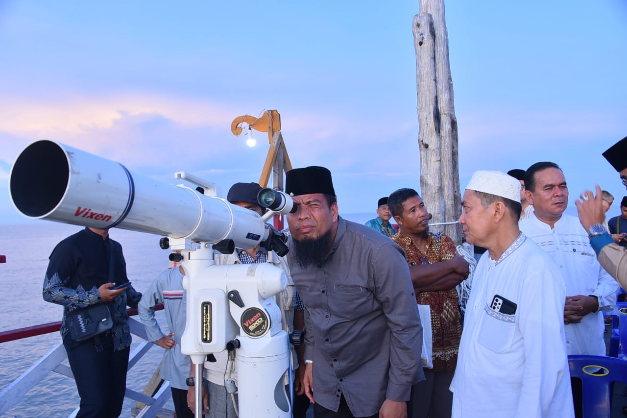 Bantan, Lintaspena.com – Bupati Bengkalis Kasmarni diwakili Asisten Pemerintahan dan Kesejahteraan Rakyat Andris Wasono hadiri Pelaksanaan Rukyatul Hilal awal Ramadhan 1441 H/2023 M, bertempat di Jembatan Raja Kecik Desa Muntai Barat Kecamatan Bantan, Rabu (22/03/2023) sore.