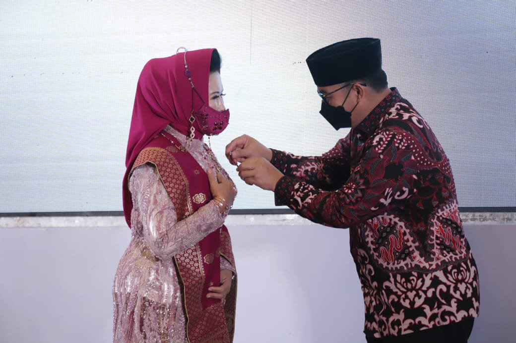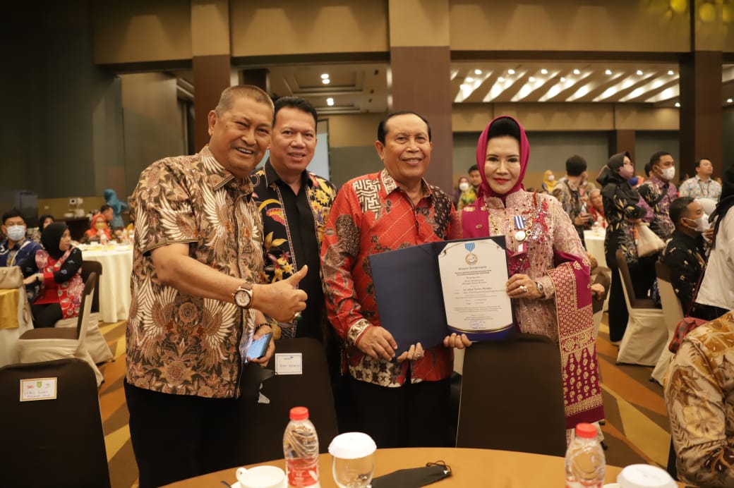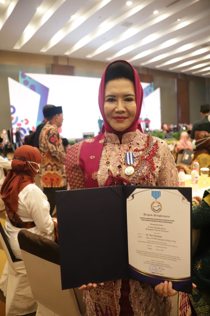 Ketua TP PKK Rohul Hj Peni Herawati Sukiman menerima Penghargaan Manggala Karya Kencana yang diserahkan langsung Kepala Badan Kependudukan Keluarga Berencana Nasional (BKKBN) Hasto Wardoyo, Rabu (6/7/2022) sekitar Pukul 16.30 Wib di Hotel Santika Dyandra, Kota Medan, Sumatera Utara.