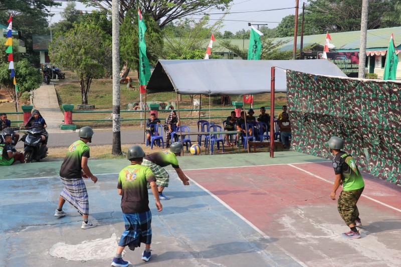 Memeriahkan HUT RI ke-78 Yonif 141/AYJP Menyelenggarakan Lomba Volly Bersarung