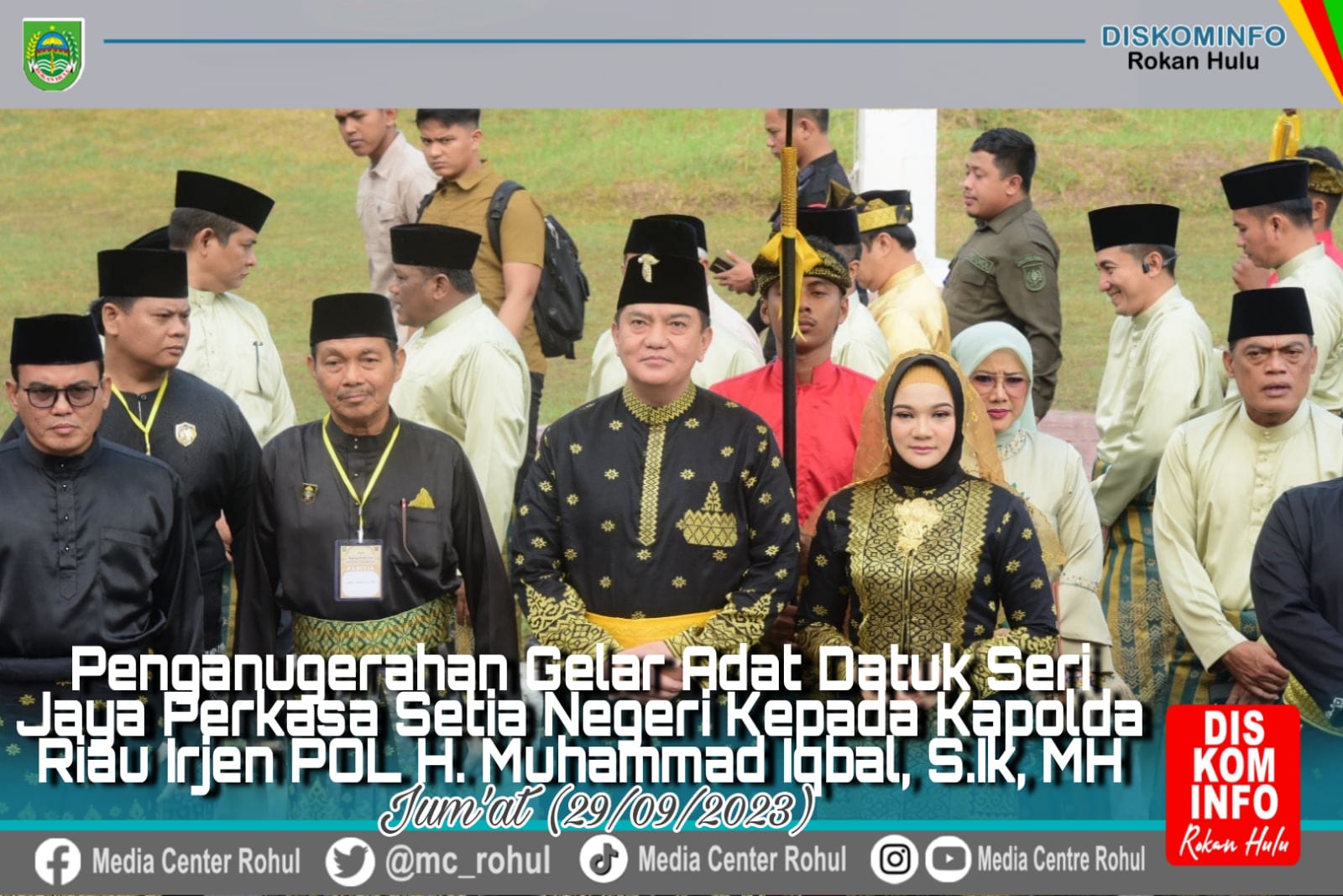 Berkat Gelar adat baru yang di berikan kepada Kapolda Riau, Bupati Rokan Hulu H.Sukiman dan Seluruh Jajaran Pemerintah Kabupaten Rokan Hulu Mengucapkan selamat dan tahniah kepada Kapolda Riau Irjen Pol. H. Mohammad Iqbal SIK, atas penganugrahan gelar adat sebagai Datuk Seri Jaya Perkasa Setia Negeri. (Kominfo/DZ).