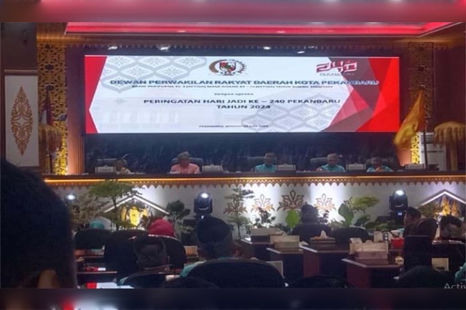 Lintaspena.com, Pekanbaru – Memasuki usia yang ke-240, DPRD Pekanbaru menggelar rapat Paripurna Istimewa dalam memperingati HUT Kota Pekanbaru ke-240, di ruang paripurna yang berlangsung secara khidmat, Minggu (23/06/24).