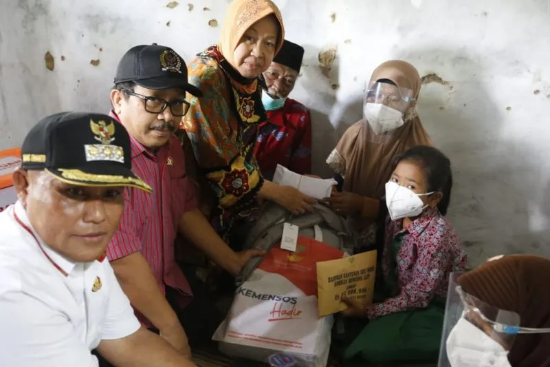 Mendengar hal tersebut, Mensos pun secara spontan menyerahkan bantuan pendidikan kepada Holisah yang memiliki dua anak yang masih sekolah.