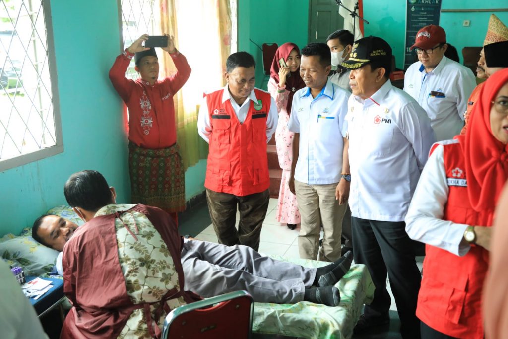 Bupati Rohul secara langsung menyerahkan bantuan paket sembako berupa beras, mie instan, telur ayam, susu dan Snack kepada anak anak di Panti Asuhan.