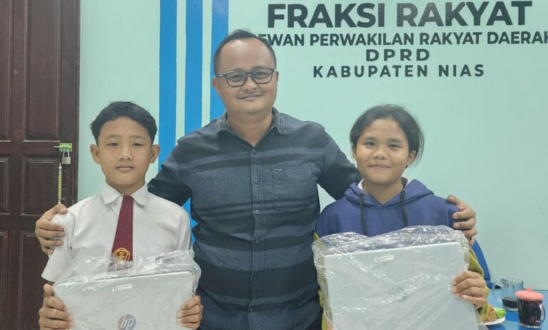 Miliki Rasa Peduli! Maspena Gulo Anggota DPRD Nias Berikan Laptop Kepada Siswa dari Uang Pribadinya