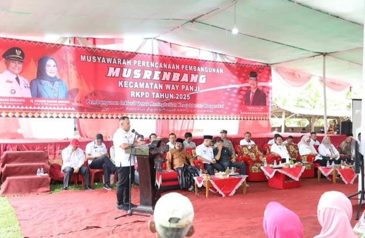 Bupati Lampung Selatan, H. Nanang Ermanto mengatakan, melalui Musrenbang ini seluruh pemangku kepentingan untuk dapat memanfaatkan moment ini untuk dapat bermusyawarah, menyatukan visi misi untuk bisa memberikan suatu kesejahteraan serta pembangunan dan pertumbuhan di Lampung Selatan khususnya Kecamatan Way Panji.