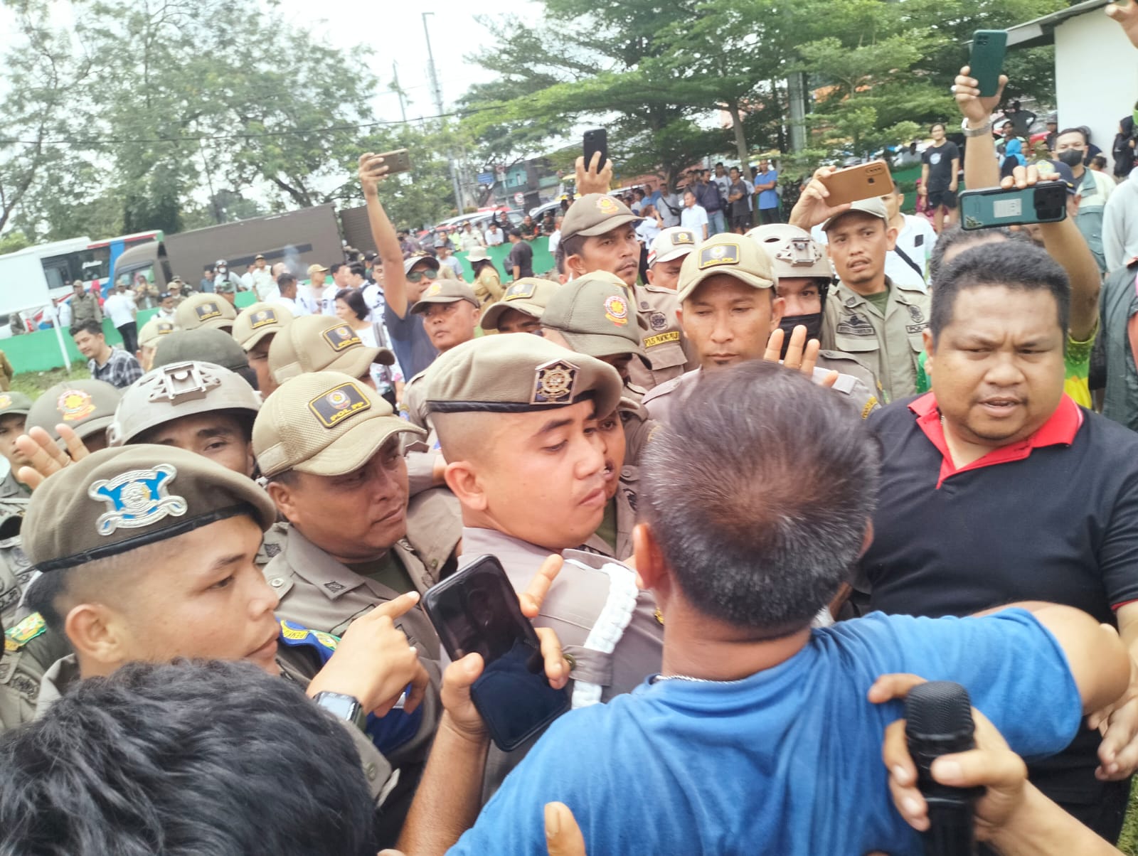 Dalam bentrokan itu, salah satu wartawan online mengalami cedera akibat tindakan saling dorong petugas Satpol PP bersama warga.