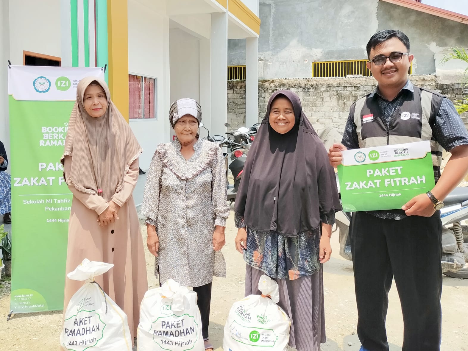 Peduli Masyarakat dan Anak Yatim Setempat, MI Tahfiz Cendekia Bersama IZI Riau Salurkan Paket Ramadan dan Zakat Fitrah