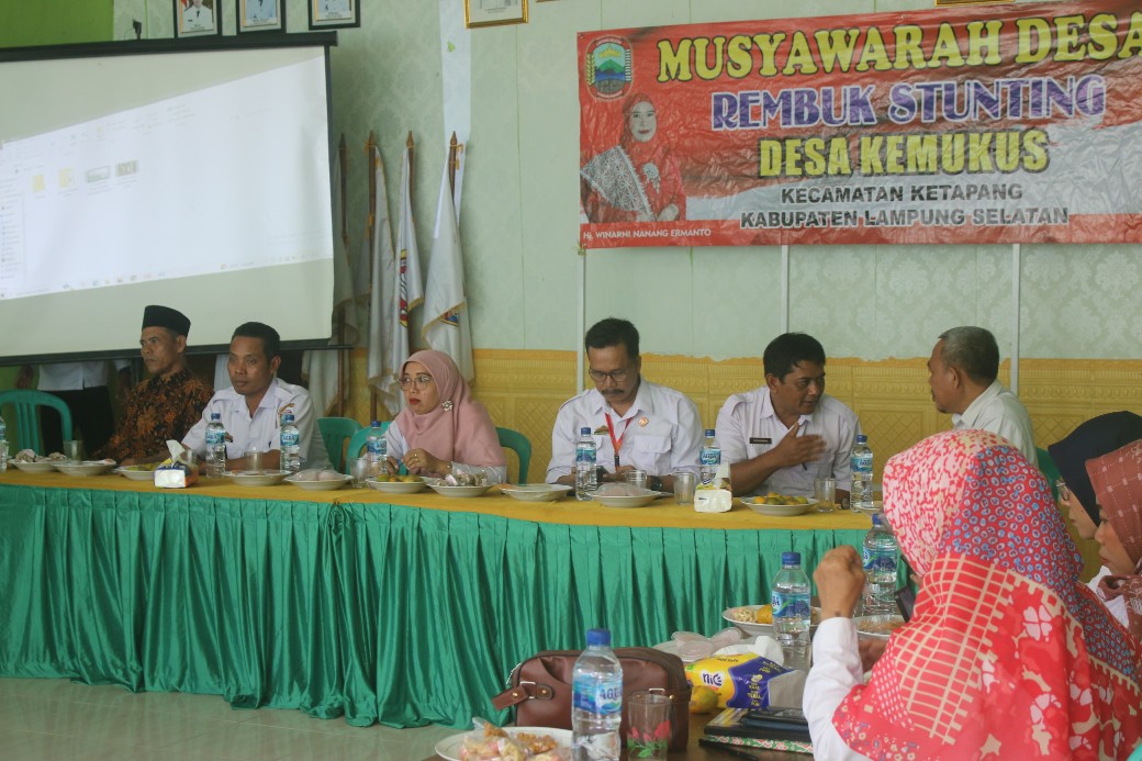 LAMSEL, lintaspena.com – Pemerintah Desa (Pemdes) Kemukus, Kecamatan Ketapang, Kabupaten Lampung Selatan mengadakan rembuk stunting yang melibatkan seluruh stakeholder wilayah dan Tim Percepatan Penurunan Stunting (TPPS) Kecamatan Ketapang di aula kantor desa setempat, Rabu (26/6/2024).